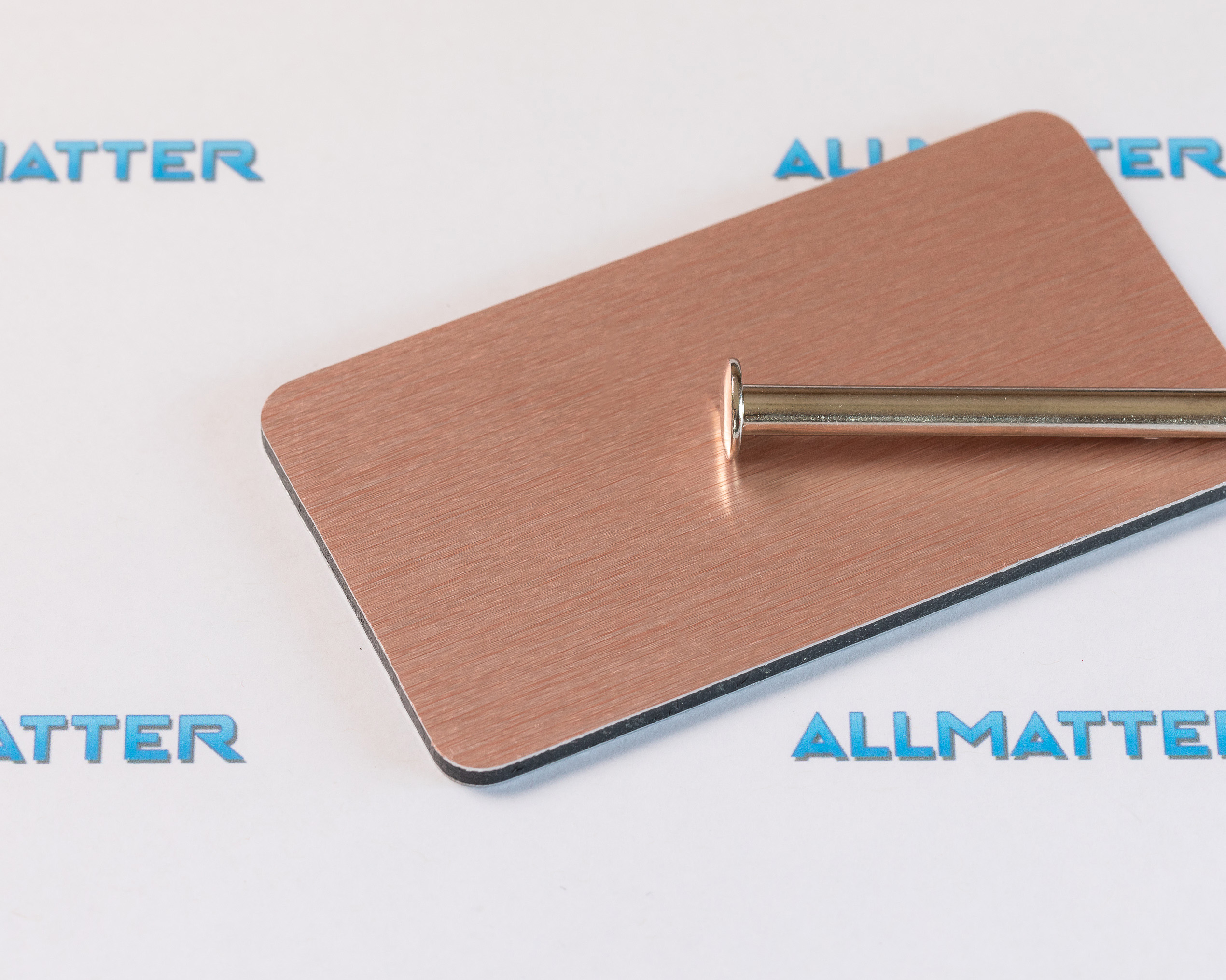 Aluminiowa płyta kompozytowa jest trwałą, sztywna, lekką oraz estetyczną płytą warstwową przeznaczona do wszechstronnego zastosowania. Płyta składa się z 2 warstw aluminium (0,3mm każda) oddzielonych od siebie rdzeniem polietylenowym. Całkowita grubość płyty to 3mm. Płyta po jednej stronie pokryta jest lakierem poliestrowym w wykończeniu miedzianym szczotkowanym (zabezpieczona folią ochronną), druga strona (techniczna) – żywe aluminium. Standardowo szczotkowanie przebiega równolegle do krótszego boku płyty.